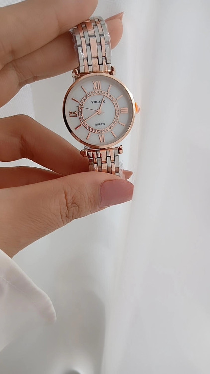 ساعت Yolako صفحه صدفی نگین دار با جعبه و باتری اضافه