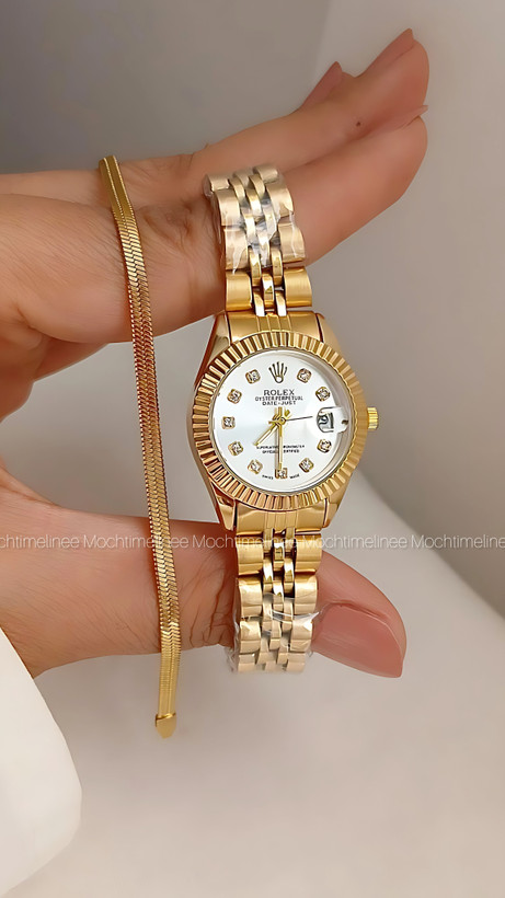مخصوص اونهایی که عاشق خاص بودن هستن ساعتمچی عقربه ای رولکس زنانه تاریخ دار فعال شیشه معدنی قطر صفحه 25 میلیمتر باتری قابل تعویض ضدآب حک مارک رولکس روی قفل