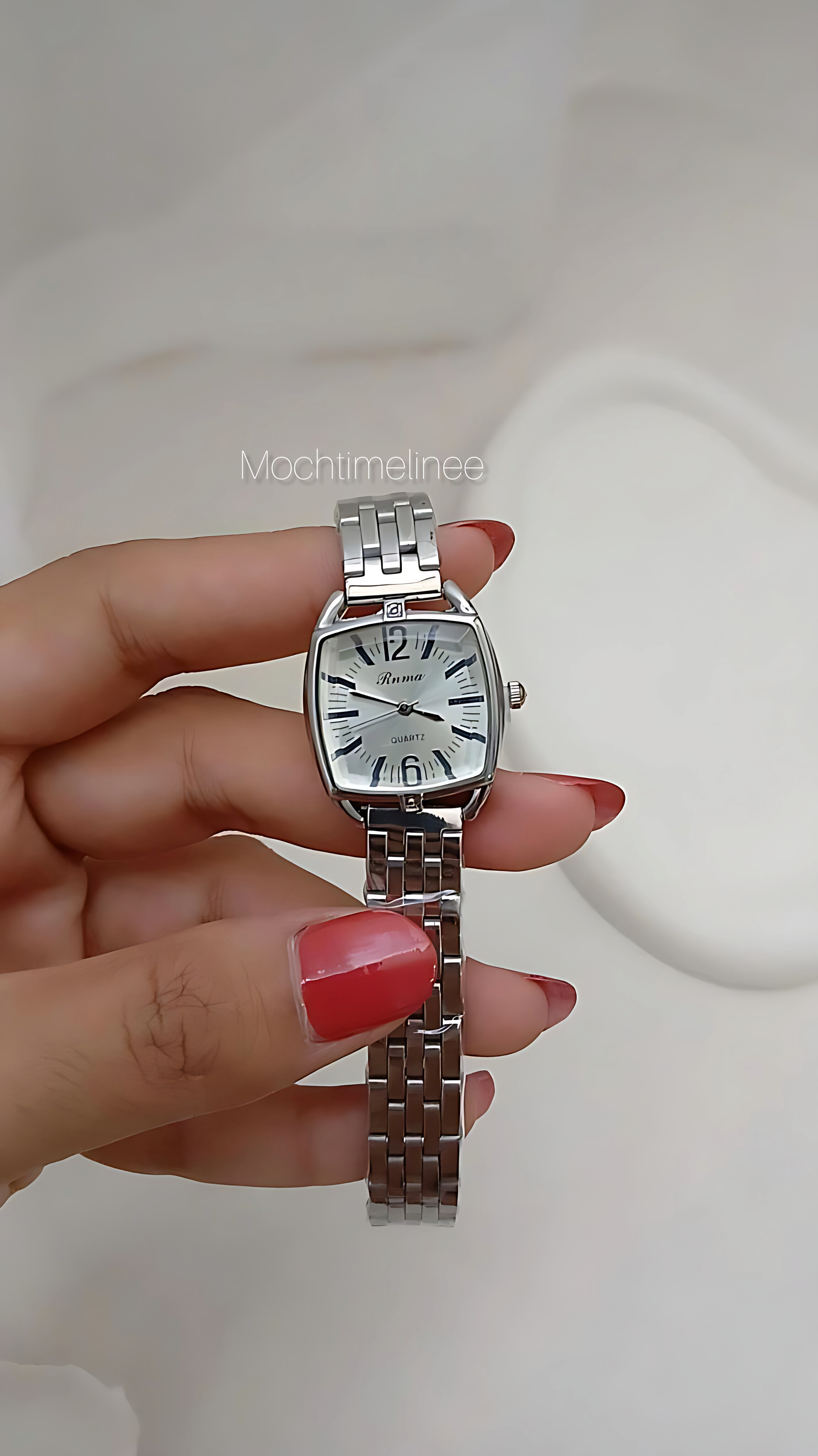 ساعت صفحه مربعی RANMA بک و بند استیل صفحه صدفی طرح دار قفل کلیپسی ضامن دار بسیار خوش دست