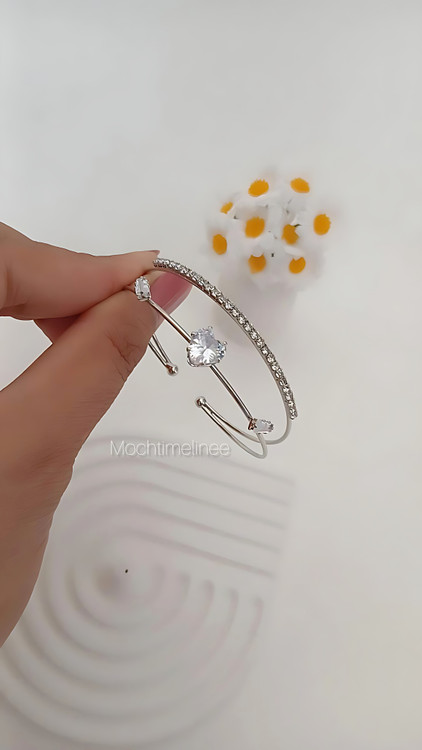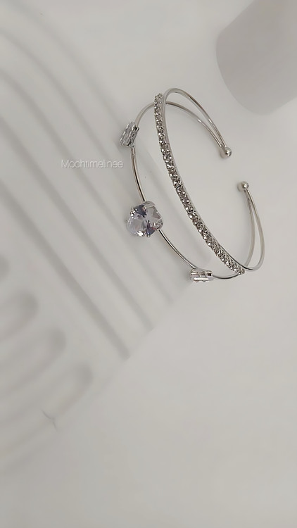 بنگل فری سایز تمام استیل جواهری دو لاین رنگ نقره ای درخشش فوق العاده و رنگ ثابت با نگین های مخراج کاری شده پر طرفدار و ترند سال ۲۰۲۵