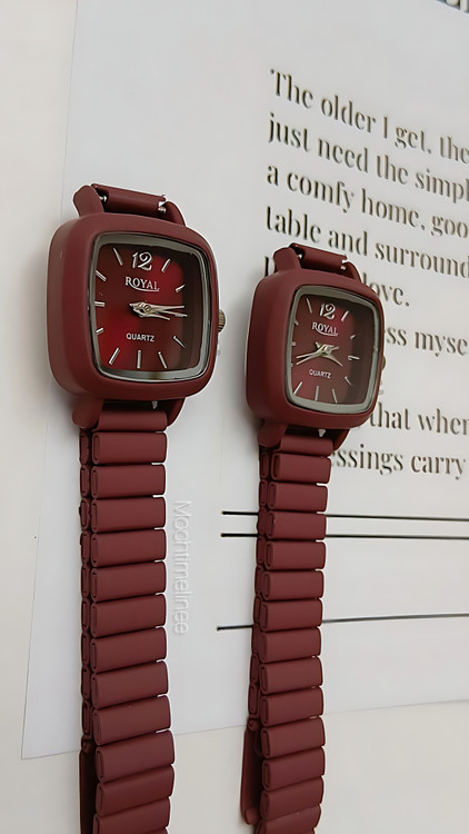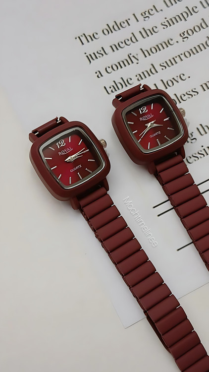 ساعت زرشکی رنگ رویال ROYAL با موتور کوارتز و بک و بند استیل ضد آب و بدون حساسیت بندی که خودت میتونی تو خونه بهراحتی تنظیمش کنی و صفحه رنگی که زیبایی اش رو چندین برابر کرده