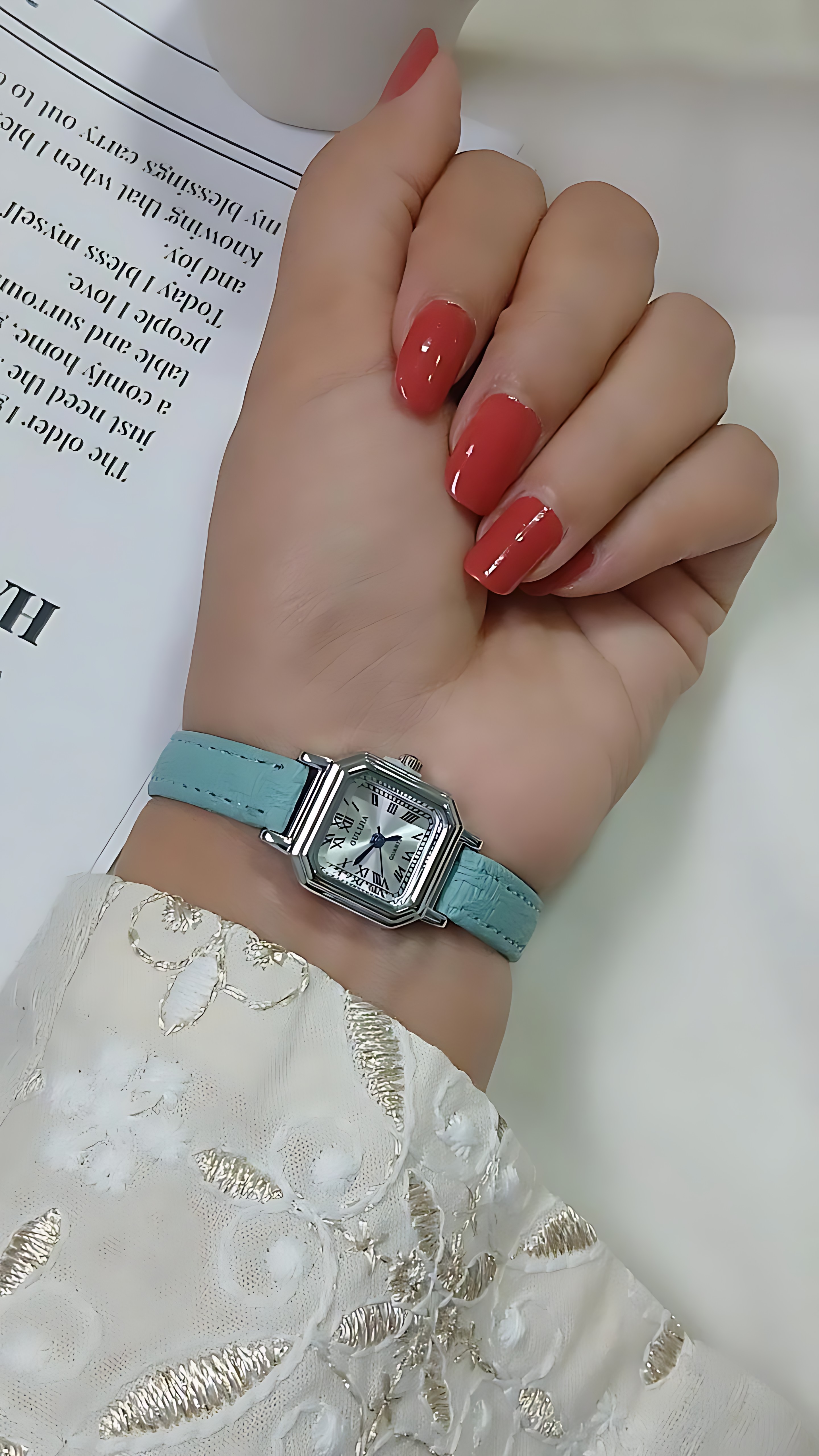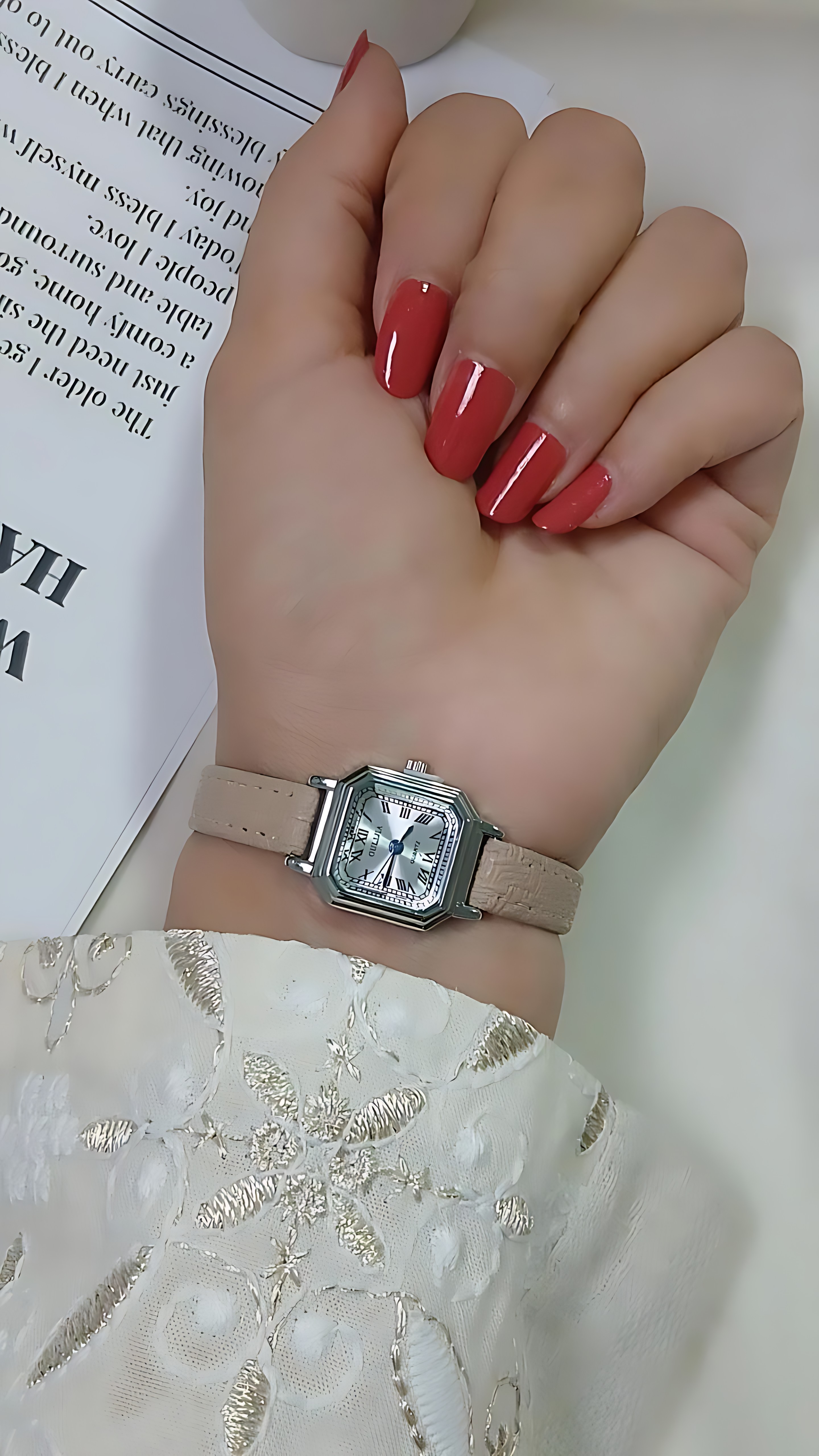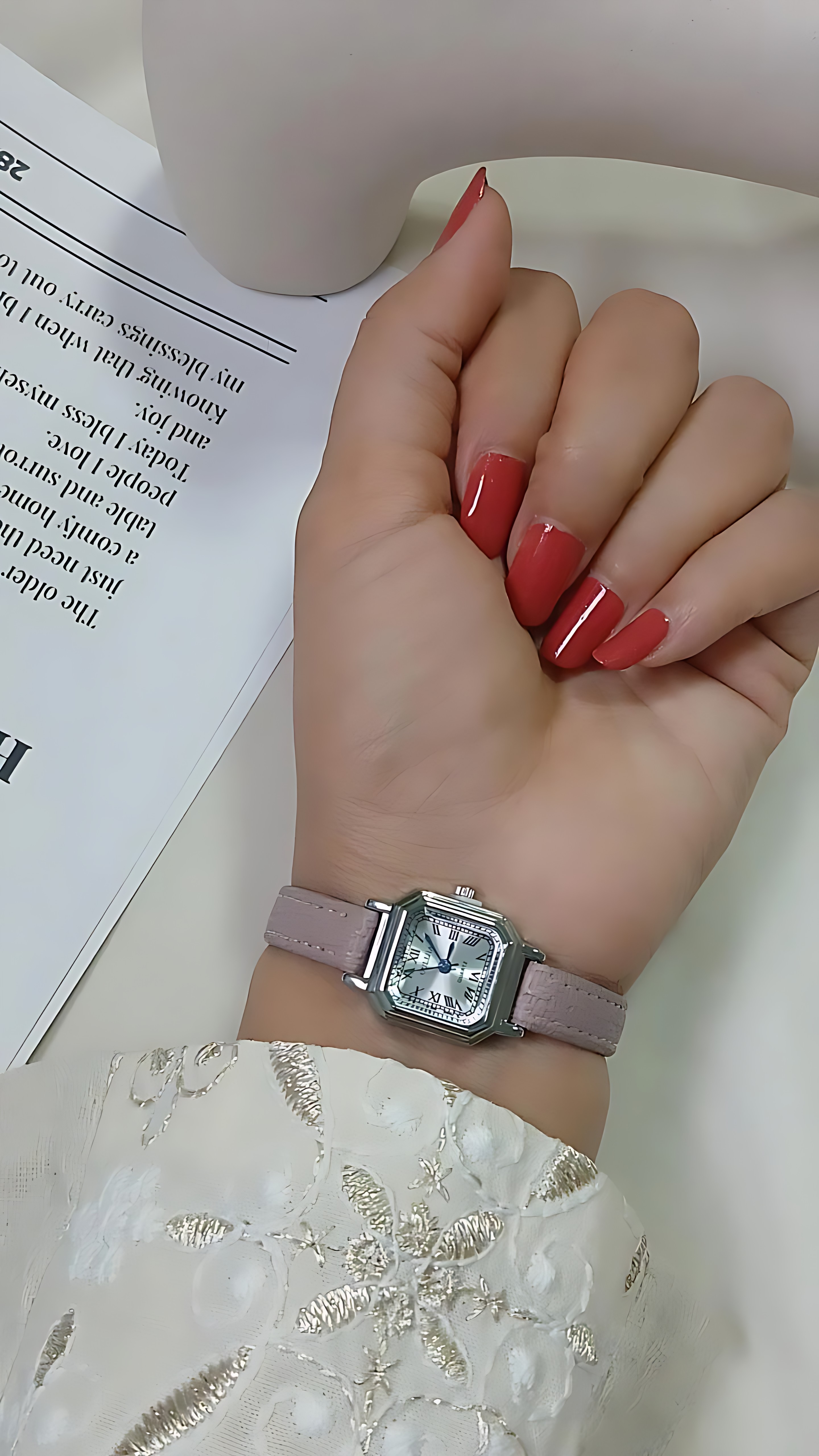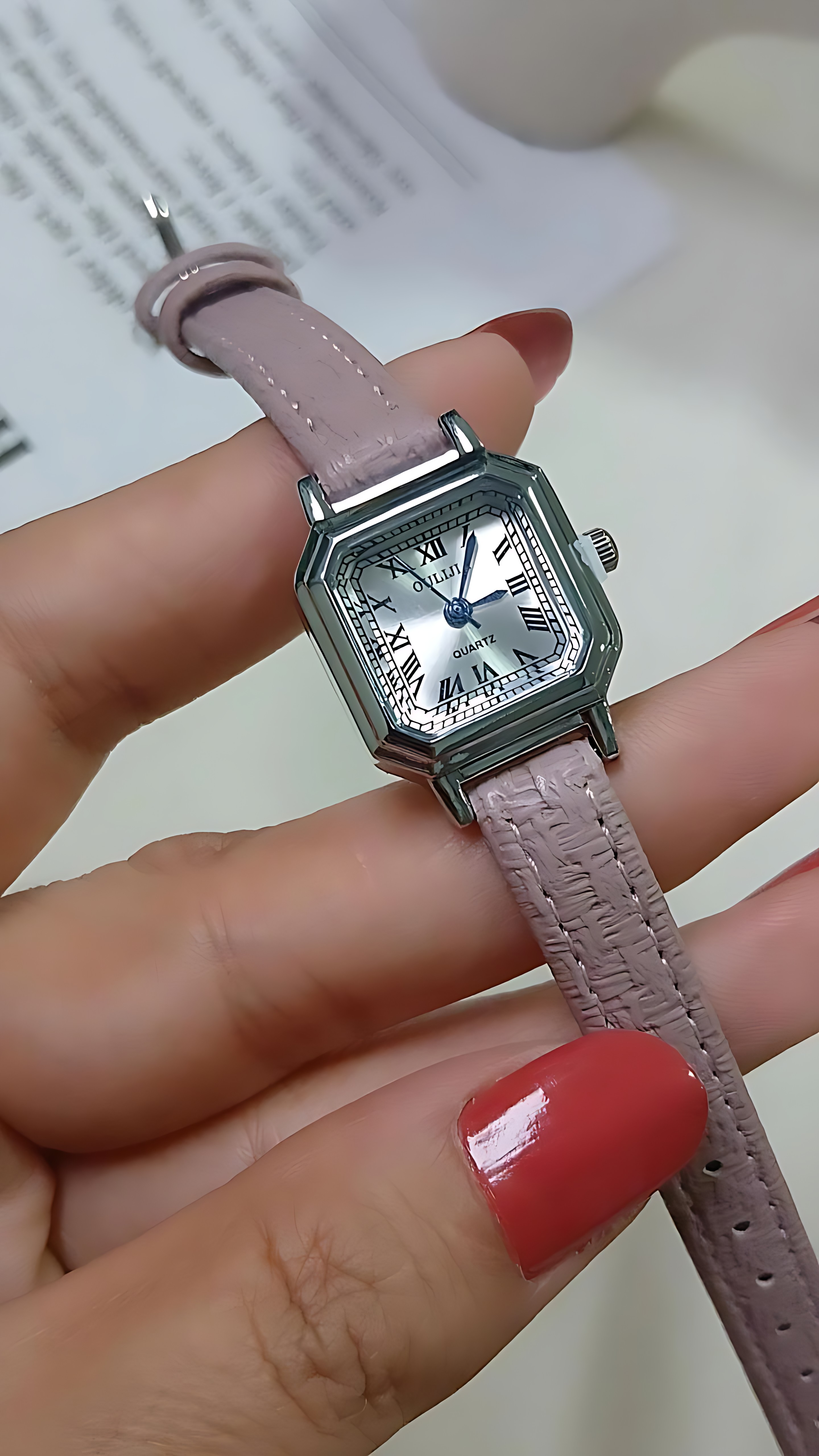 ساعت بند چرمی با صفحه ی خاص و اعداد یونانی دوخت ظریف دور چرم و انعطاف بالای چرم جز ساعتمچی مینیمال در رنگبندی متنوع