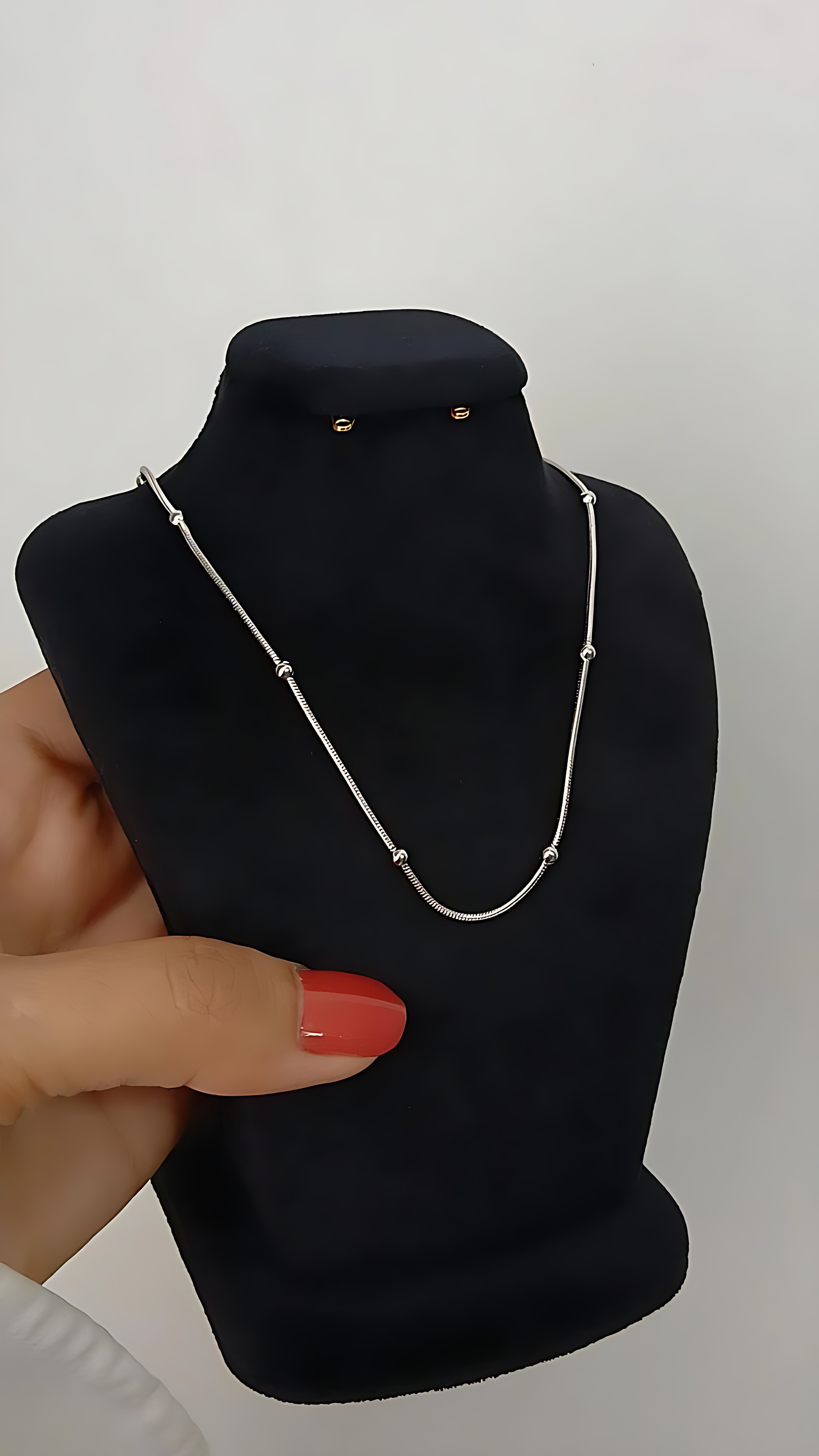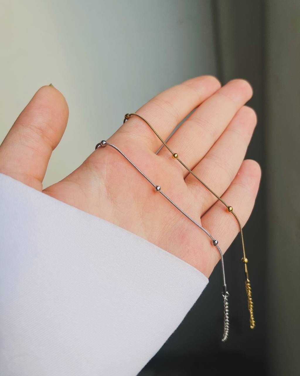 گردنبند و دستبند توپی تمام استیل هم به صورت ست و هم به صورت جدا قابل سفارش هست طول زنجیر گردنبند 45 سانت و دستبند و پابند زنجیر قابل سایز شدن دارد پس نگران نباشید رنگ این محصول ضمانتی است
