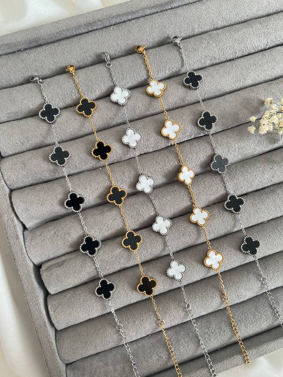 گردنبند و دستبند ونکلیف تمام استیل دارای دو رنگ صدفی و مشکی رنگ ثابت به صورت ست یا جدا قابل سفارش هست