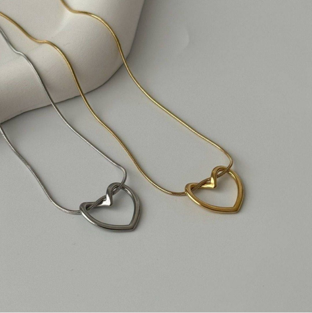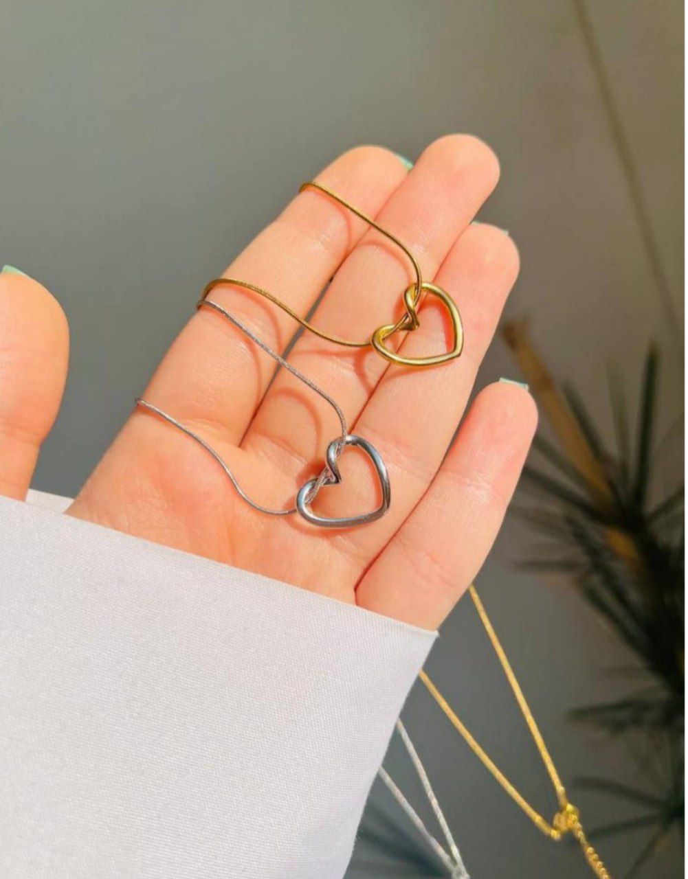 گردنبند قلب دفرمه تمام استیل بدون حساسیت با ثبات رنگ تضمینی و زنجیر ماری نازک و زنجیر همراه جهت سایز دلخواه طول زنجیر 45 تا 48 سانت