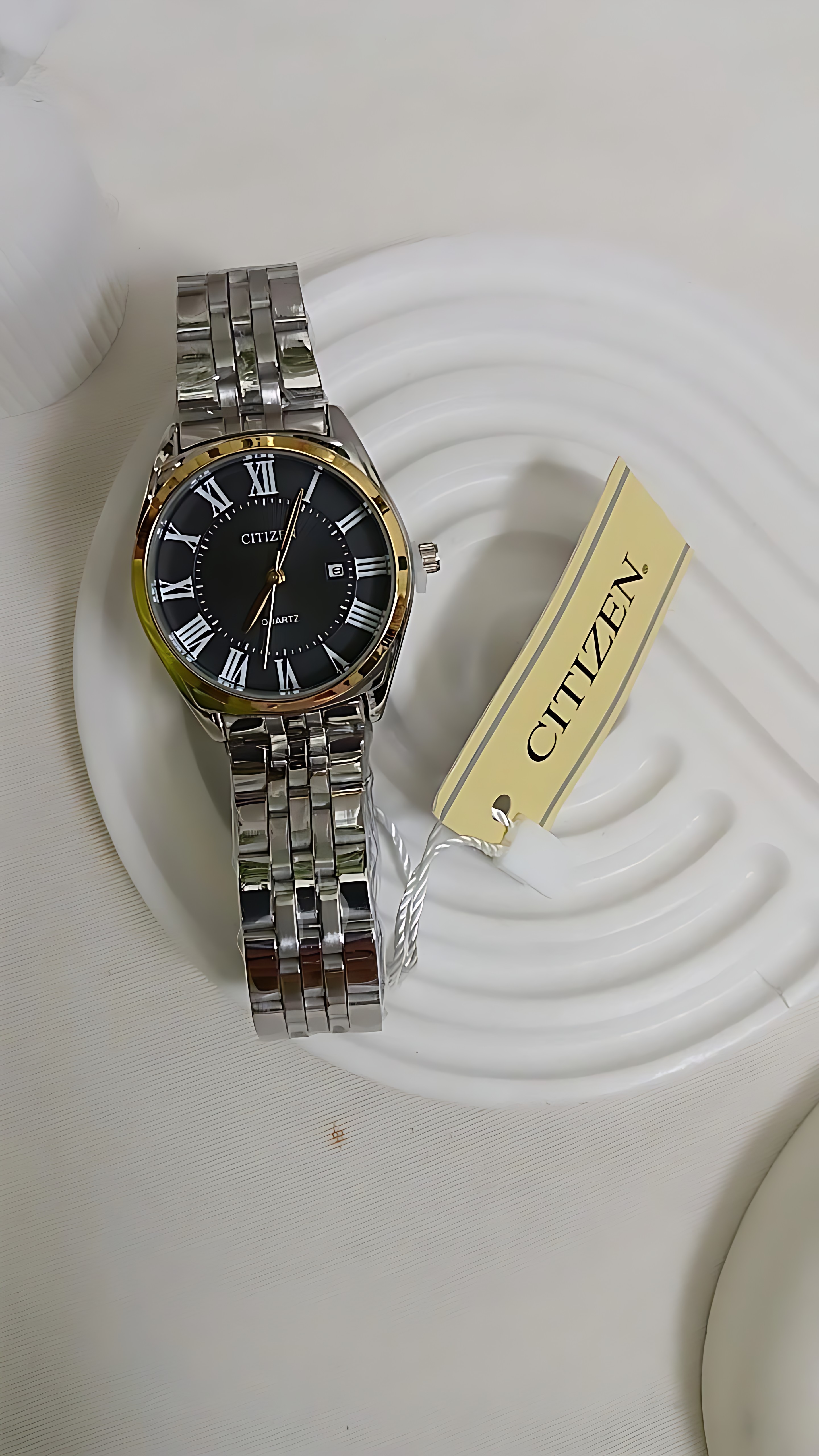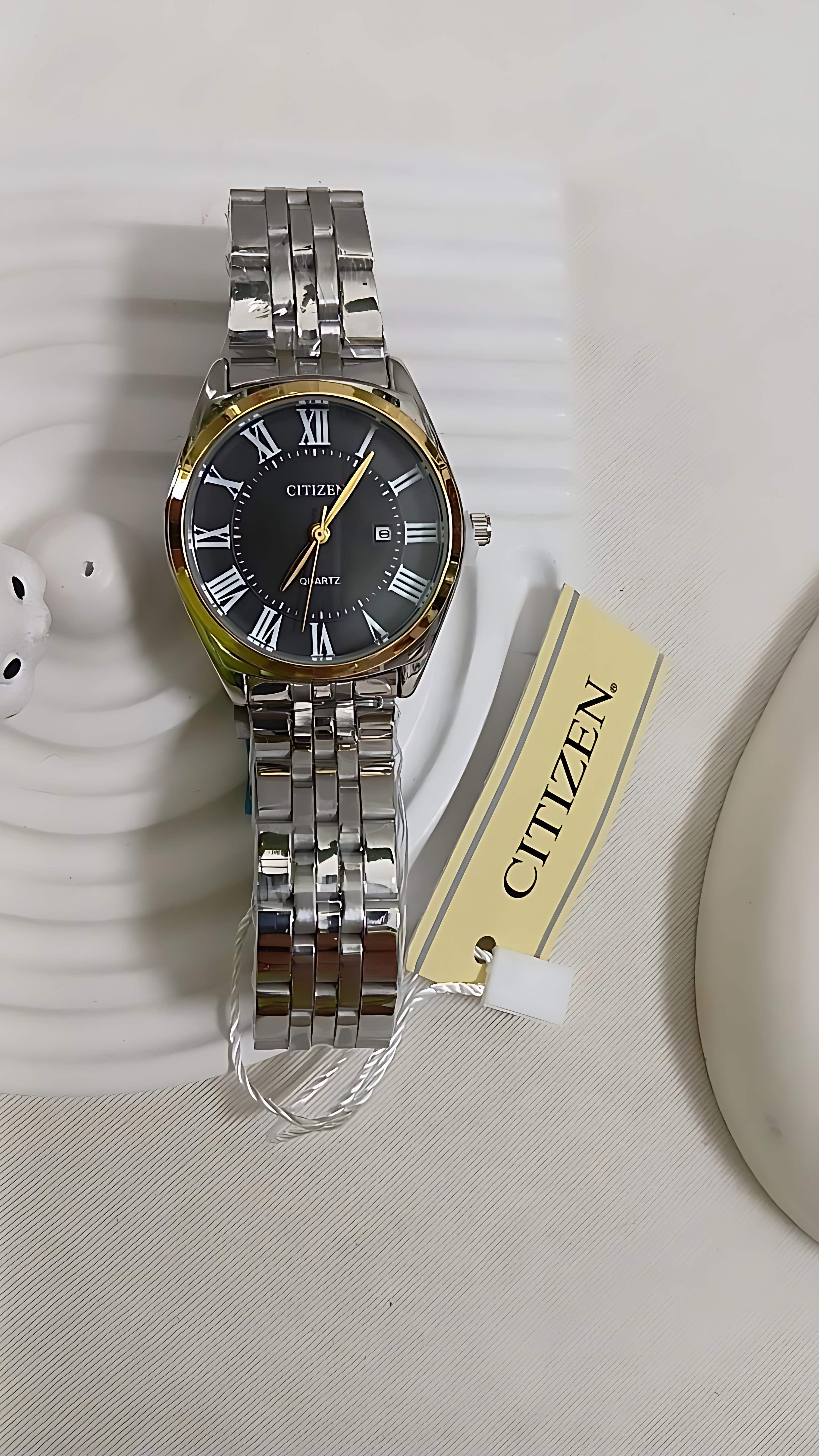 ساعت مچی سیتیزن در دو طرح مردانه و زنانه ضدآب و تاریخ دار فعال شیشه معدنی تاریخ دار فعال رنگ ثابت تضمینی با حک برند CITIZEN روی قفل کیفیت بالا موتور