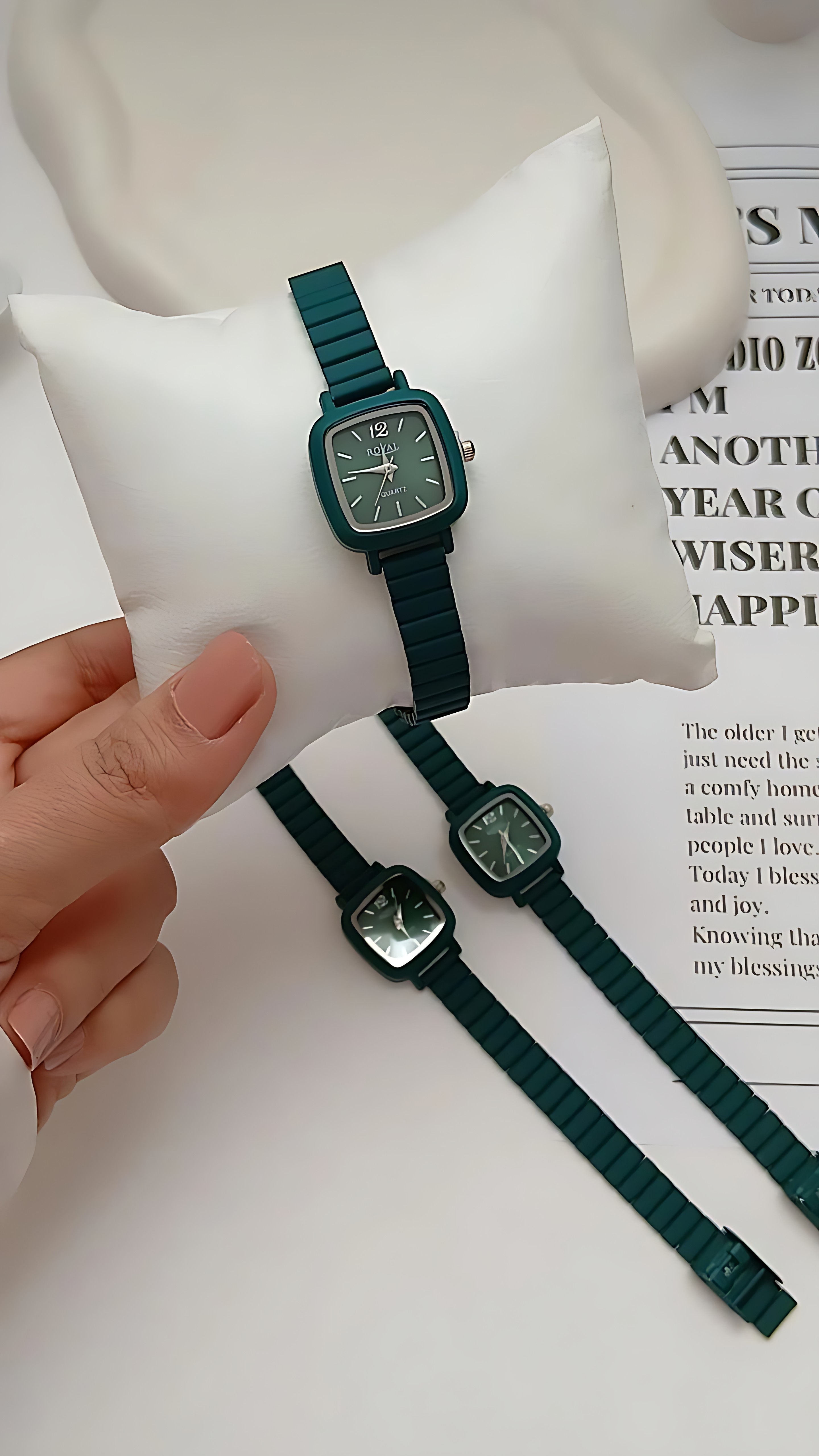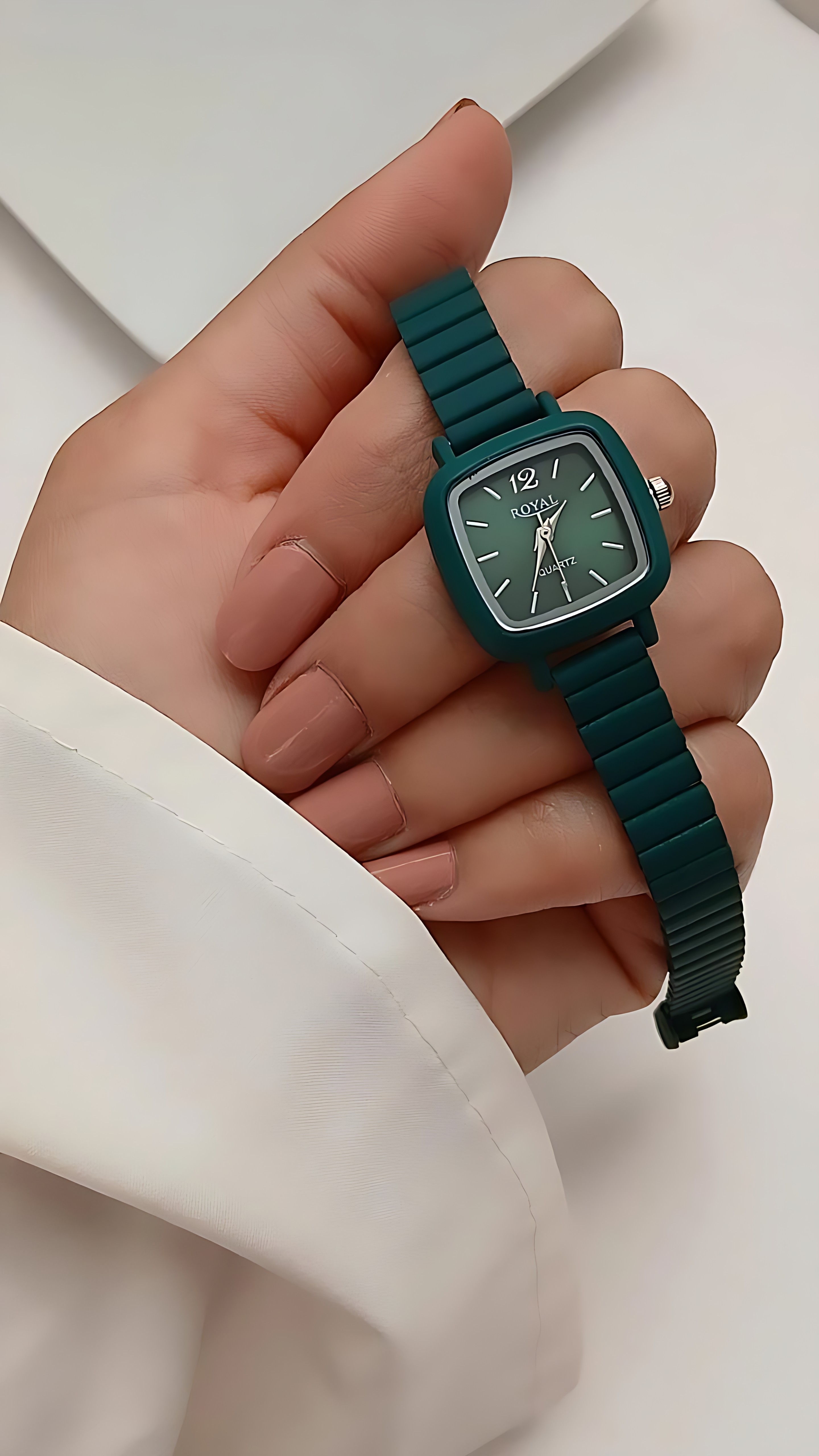 ساعتمچی زنانه رویال ROYAL با بند ریلی و رنگ سبز زمردی با موتور کوارتز درجه یک و باتری قابل تعویض رنگ ثابت