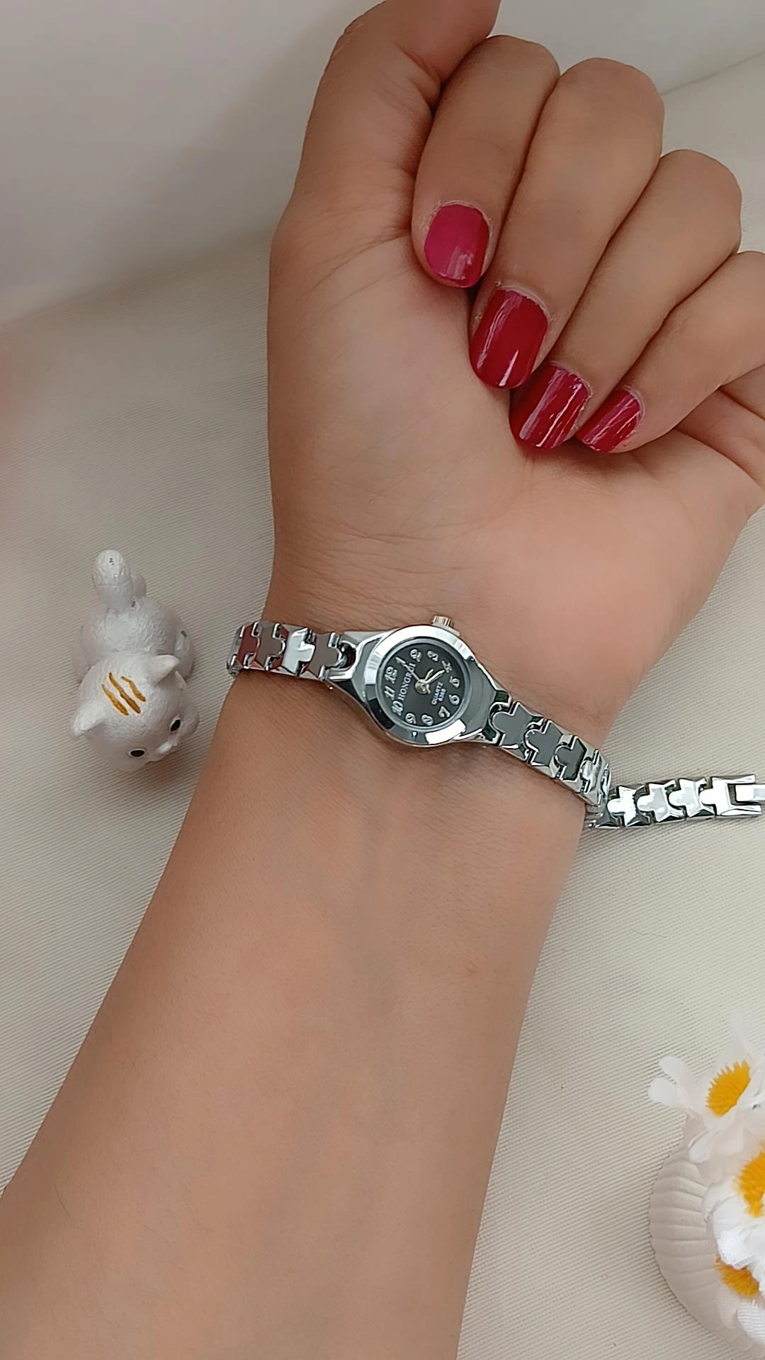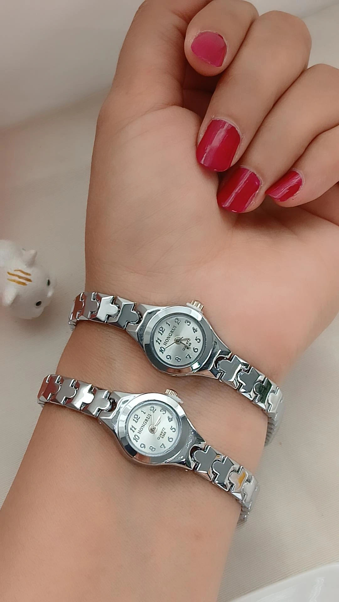 ساعت مچی ظریف زنانه با بک و بند استیل و صفحه ی دایره ای بند و قفل دستبندی بسیار با کیفیت و با دوام بالا